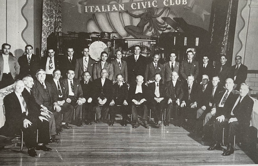 As the years passed the Italian population grew, and in the 1920's many of them realized the need to meet, organize and be united. They were the victims of open and severe discrimination. They were denied jobs and participation in civic activities. They worked long hours, mostly at jobs others did not want. Because of this and the desire to develop and encourage better American citizenship, they started meeting in their homes. The first of these meetings took place at "Big John" Euliano's home on Walnut Street and was appropriately called "The Big John Club." Other names for those later groups were: